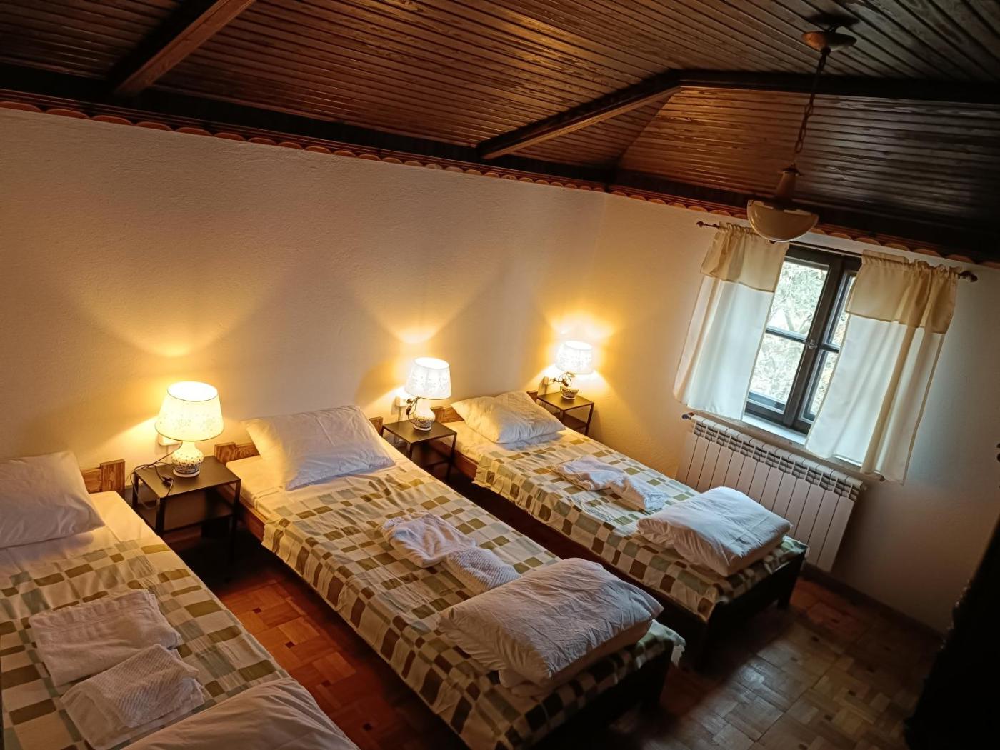 Pokój trzyosobowy z widokiem na ogród. Guests will find a stovetop, a refrigerator, a dishwasher and kitchenware in the well-fitted kitchen. The triple room also features a barbecue. The triple room offers a tea and coffee maker, a seating area, a terrace with garden views as well as a private bathroom boasting a bath. The unit has 2 beds. Pokój Trzyosobowy - 3 osobowy. Powierzchnia pokoju ok.: 15 mkw.
