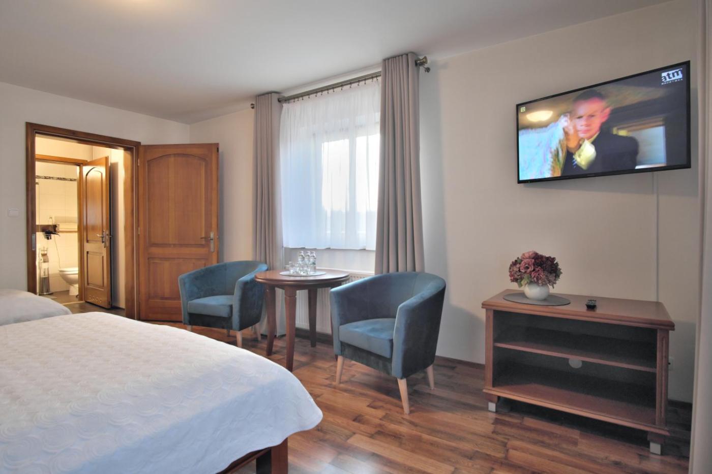 Pokój Trzyosobowy typu Deluxe. The triple room features soundproof walls, a wardrobe, as well as a private bathroom boasting a shower and a hairdryer. The triple room provides an electric kettle, parquet floors, heating and a flat-screen TV with cable channels. The unit has 2 beds. Pokój Trzyosobowy - 3 osobowy. Powierzchnia pokoju ok.: 25 mkw.